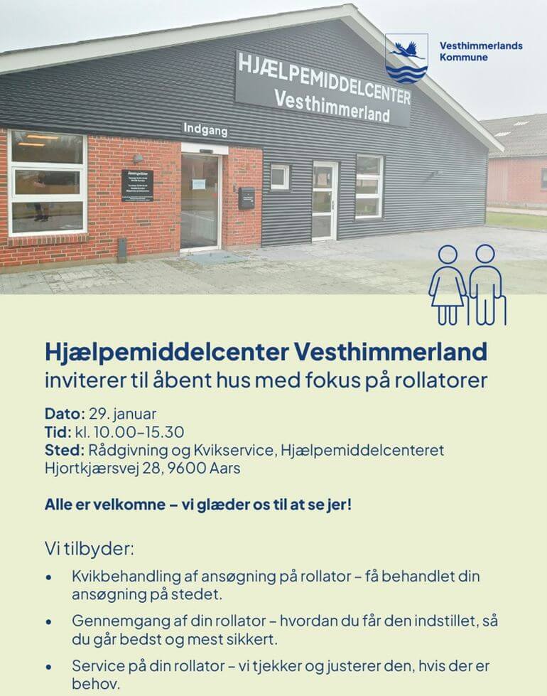 VESTHIMMERLAND: Hjælpemiddelcenter Vesthimmerland inviterer torsdag til åbent hus, hvor der sættes særligt fokus på rollatorer.