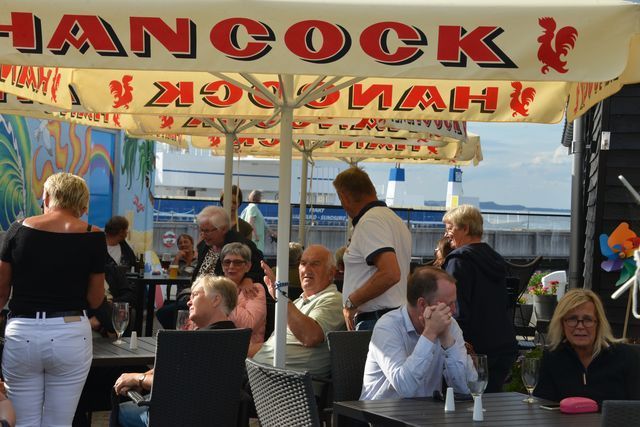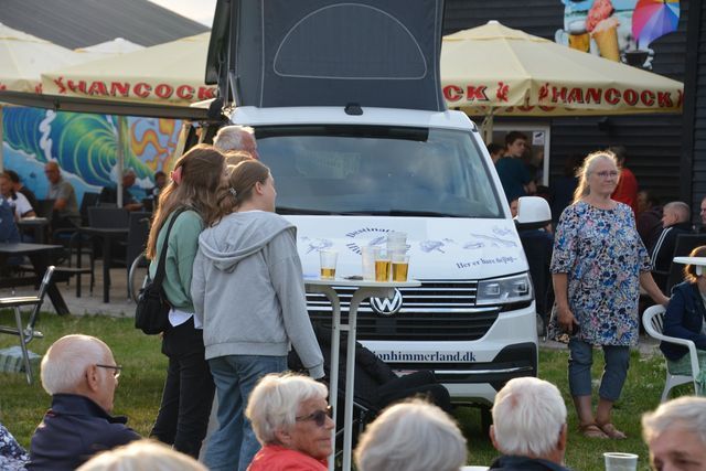 Efter koncerten med Thomas Blum og gæster var færdig ved 20.30-tiden kunne folk, der havde mod på mere aftenhygge og god livemusik, rykke videre til færgekroens terrasse.
