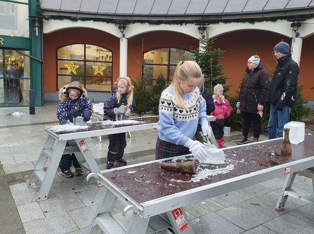 Ice for Kids – tre dage inden juleaften, var derfor en kærkommen julegave. Her blev isblokke stillet an for børnene udenfor Farsø Rådhuscenter, så de kunne hugges til isfigurer.