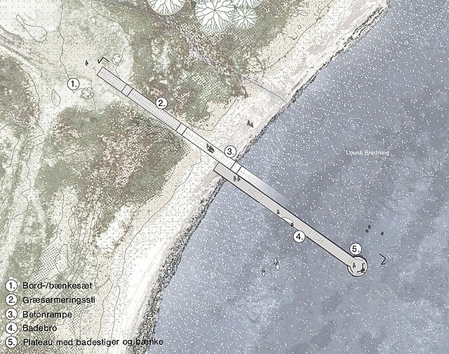 Louns, som har et ønske om en badebro, er lige nu under myndighedsbehandling i Kystdirektoratet, som har ret meget at sige, når man arbejder i kystbeskyttelseslinjen. Ønsket er en betonbro, men Kystdirektoratet vil kun give tilladelse til en træbro med vandgennemstrømning under. Desuden er man heller ikke helt enige om hvor langt broen skal gå ud i vandet. Broen skal bl.a. bruges som bådsbro til kajakker og robåde.