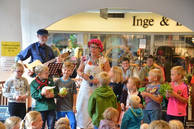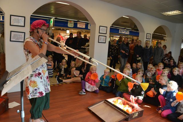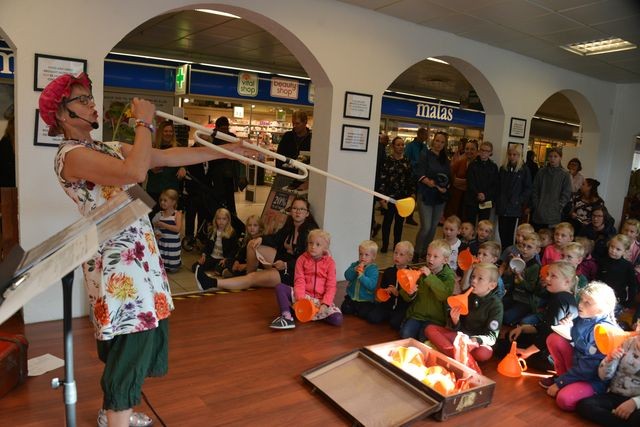 Der var pause i aktiviteterne ca. en halv times tid da Tante Andante bød børnene med Centertorvet, hvor hun med sang og en sjov underholdende måde også tog udgangspunkt i skabelsesberetningen.
