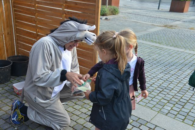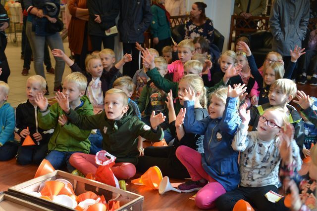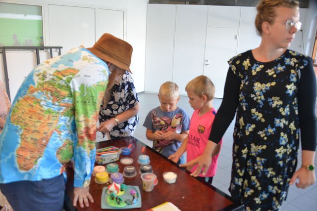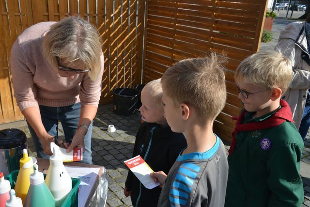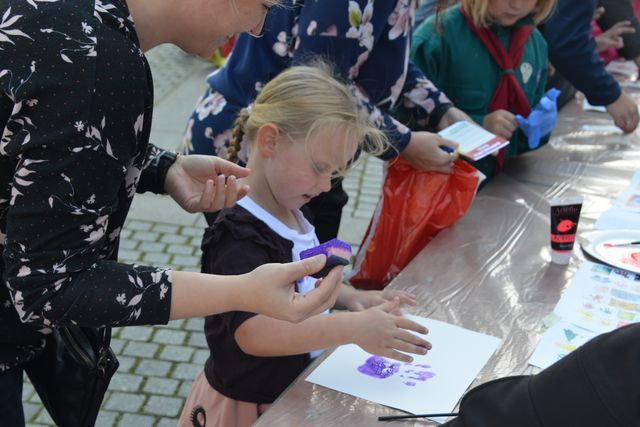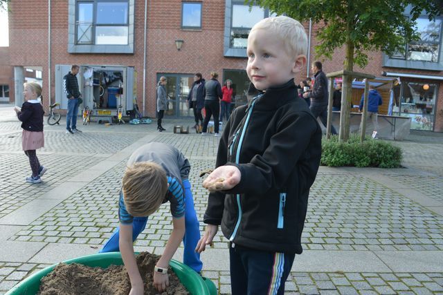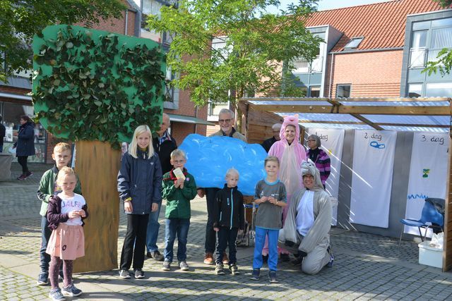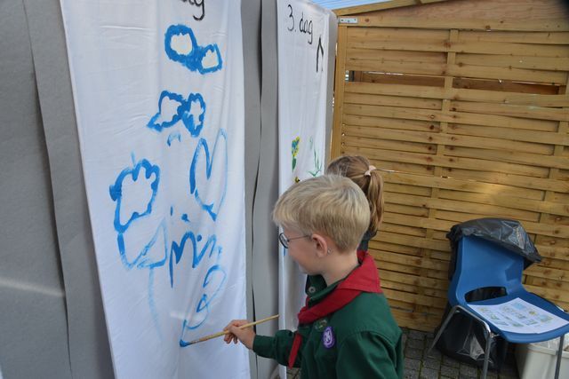 Børnene gik til opgaven med stor iver, og så gav det også to klip i det aktivitetskort, som skulle føre børnene rundt til dagens andre aktiviteter såsom at lave håndaftryk, stå på stylter, grave efter guldsten, riste skumfiduser over bål, modellere figurer til jordkloden og et opgaveløb der gik på at finde spejderudstyr i rådhuscenterets butikker.