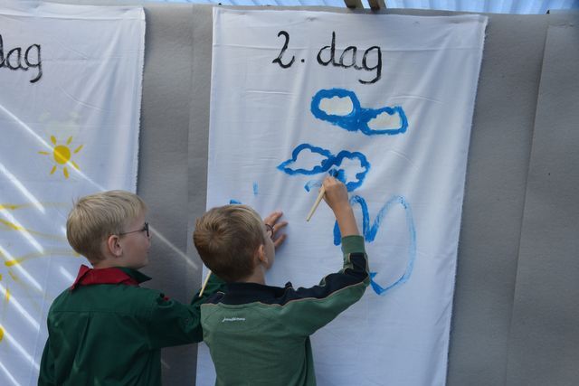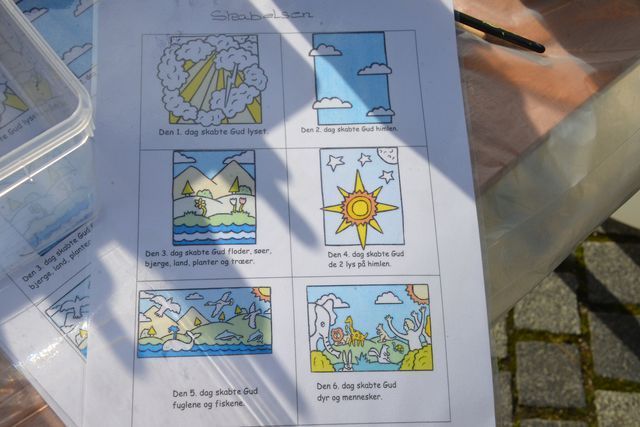 Det kom bl.a. til udtryk på seks store lærreder på Store Torv, hvor børnene fik til opgave at male elementer fra Skabelsen under de dage hvor de hørte til, eksempelvis himlen på andendagen og fisk og fugle på femtedagen.