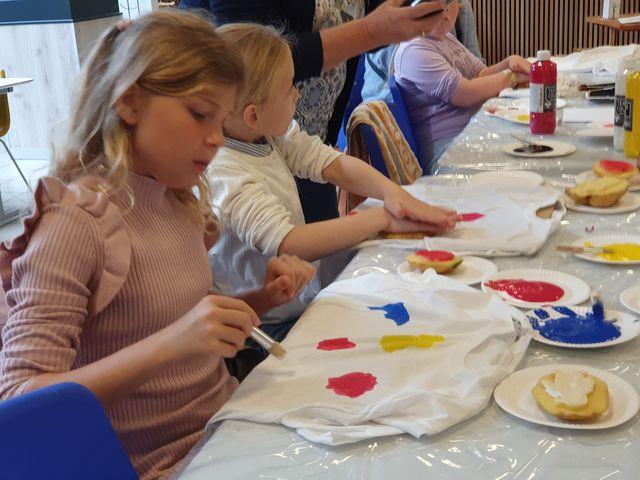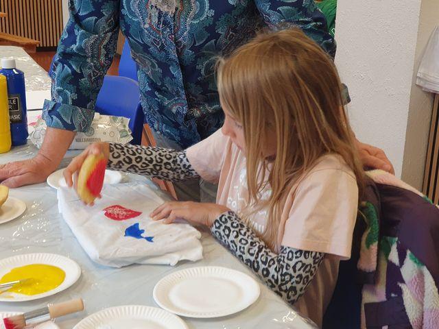 For børn og børnefamilier var der også meget at byde på i Farsø Rådhuscenter imens blæsten ruskede udenfor. Lørdag og søndag stillede den nye gruppe ”Farsø’s lokale ildsjæle” sig til rådighed for at hjælpe børnene med kartoffeltryk.