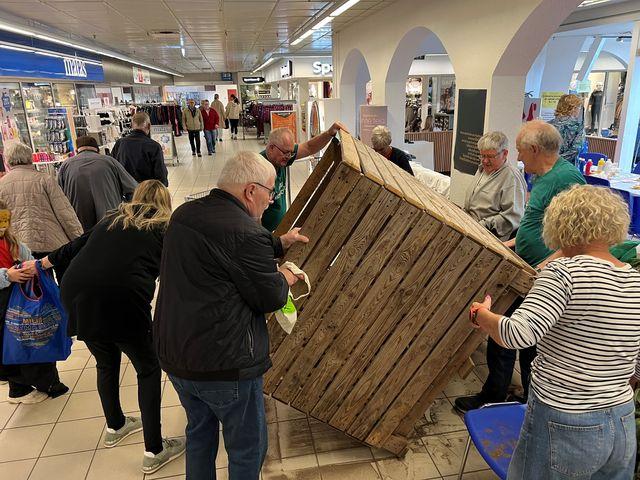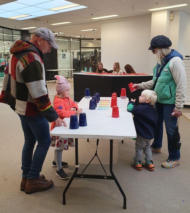 Både lørdag og søndag kunne familierne hygge sig med forskellige huskelege i den tidligere skobutik i centret.