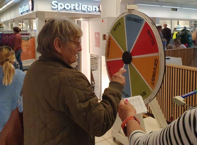 De stod også for lykkehjulet, hvor kunder med en bon fra butikkerne på over kr. 300,- kunne spinne på hjulet og vinde gaver.