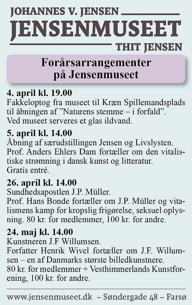 -Vi håber, så mange som muligt vil deltage, så det bliver en festlig indvielse af ”Naturens Stemme. Alle er hjerteligt velkomne til at være med. Lad os sammen tænde op for en levende og vitalistisk sæson i Farsø!, lyder det fra leder af Johs. V. Jensen og Thit Jensen Museet, Peter Hørup.