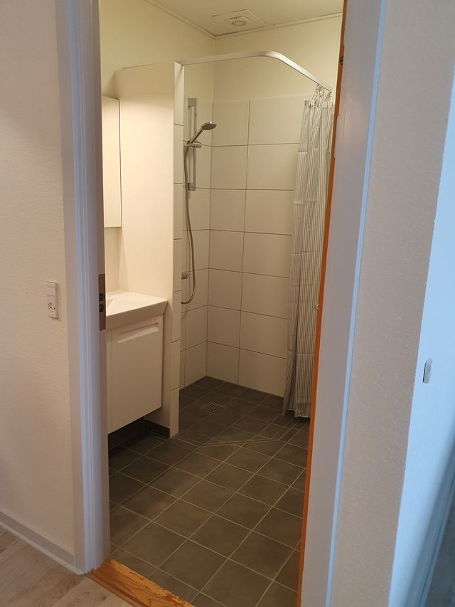 Peder Holm Pedersen fortæller, at der tidligere var brusekabine med kar, som ikke var praktisk og efterhånden slidt. Derfor er de 12 badeværelser nu bygget op på ny. Og når man nu var i gang fik værelserne også en opfriskning med ny maling.