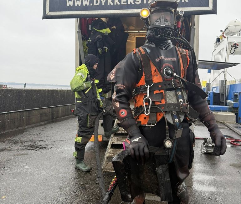 Det vidste sig at noget havde sat sig fast i skruen og en professionel dykker derfor måtte sendes ned for at få fremmedlegemet fjernet. Det viste sig at være et stykke gummi som havde sat sig fat i færgens agterskrue.