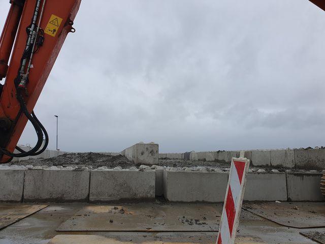 Arbejdet forventes færdigt i denne uge, hvorefter blokkene fjernes igen og oprydning går i gang.