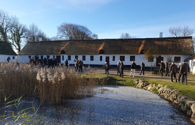Herefter klippede Kurt Friis Jørgensen snoren til renoverede stuehus på Hessel og alle fremmødte fik et kig i det juleudsmykkede stuehus med det flotte tag og loft. I dagens anledning blev der bl.a. også budt på Stråtagssnaps fra snapselauget, naturligvis med strå som ingrediens.