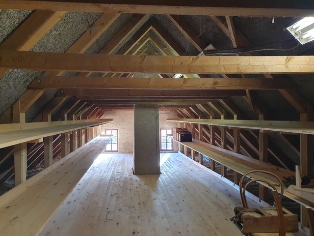 Renoveringen har især stået på stuehusets tagkonstruktion. Udover at stråtaget trængte til en udskiftning, så har selve tagkonstruktionen også tynget stuehusets murværk mod gårdspladsen, så det flere steder var i fare for at skride ud.