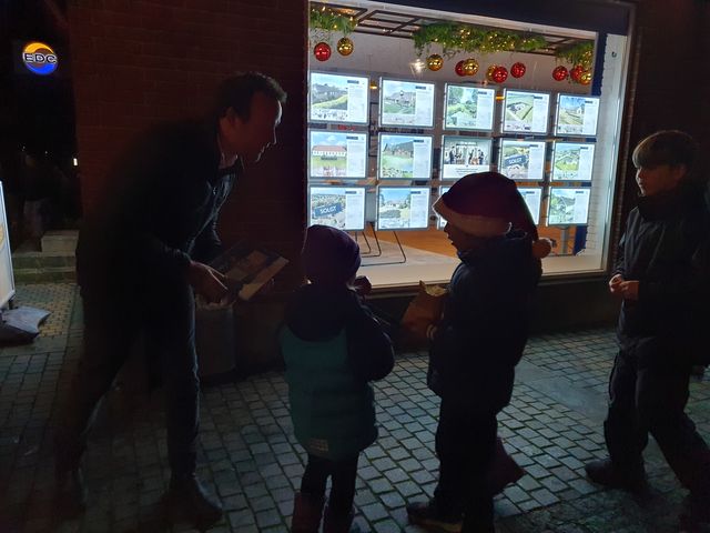 Efter at lysene var tændt blev det hurtigt spottet at medarbejdere fra EDC mæglerne stod klar med 500 gratis chokoladekalendere til børnene. De blev hurtigt uddelt og dermed er nedtællingen til juleaften fra den 1. december også sikret.