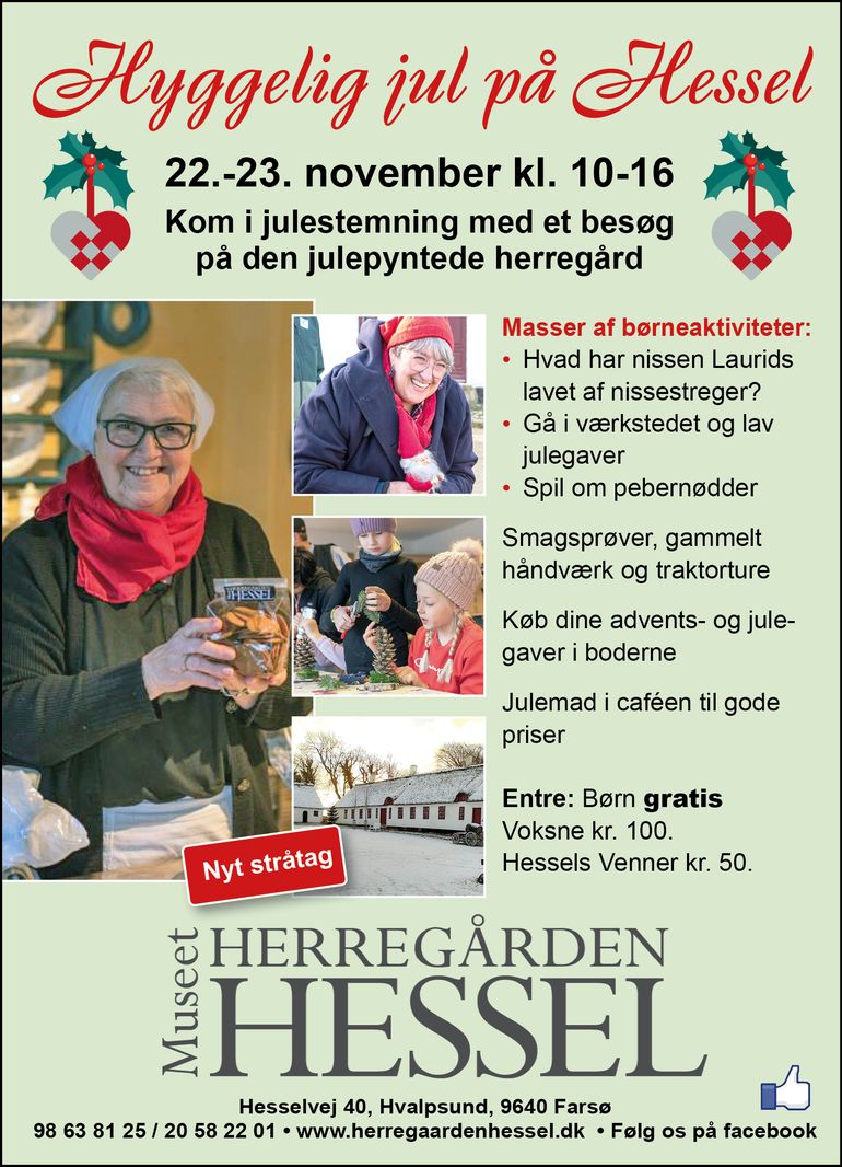 Opfordringen lyder derfor, tag familien under armen og få en rigtig hyggelig, gammeldags juleoplevelse på Hessel.
