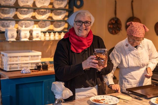 Der er smagsprøver af småkager til alle, mens det kun er for voksne, at der er snapse- og ølsmagsprøver. Der er også salg af småkager, øl og snapse.