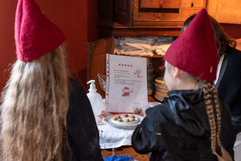 Der er duft af jul fra småkagebagning i køkkenet. Og rundt omkring i stuerne er der små aktiviteter såsom spillet ”Mus” med pebernødder og fletning af stjerner.