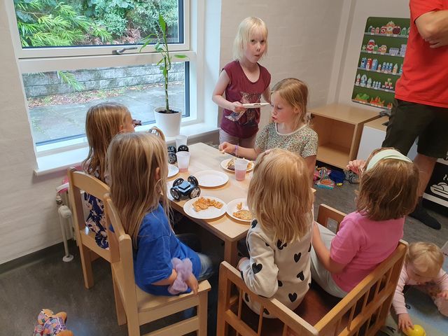 Vi er nu flyttet ind i det her fantastiske hus. Jeg drømte om en institution hvor forholdene for børnene og de pædagogiske aktiviteter blev forbedret og at vi fik et bedre fysisk miljø – ikke kun for børnene, men også os der arbejder her. Alle de drømme er blevet opfyldt til fulde. Jeg har fået det som jeg drømte om. Ikke mindst vores køkken som jeg nu synes er med til at skabe den stemning af et godt dagtilbud, der også dufter af hjemlig aktivitet. På den måde kan børnene kan være med til at bage, lave mad og skære frugt, så det ikke kun er et arbejde for os, men en aktivitet som børnene kan være en del af.