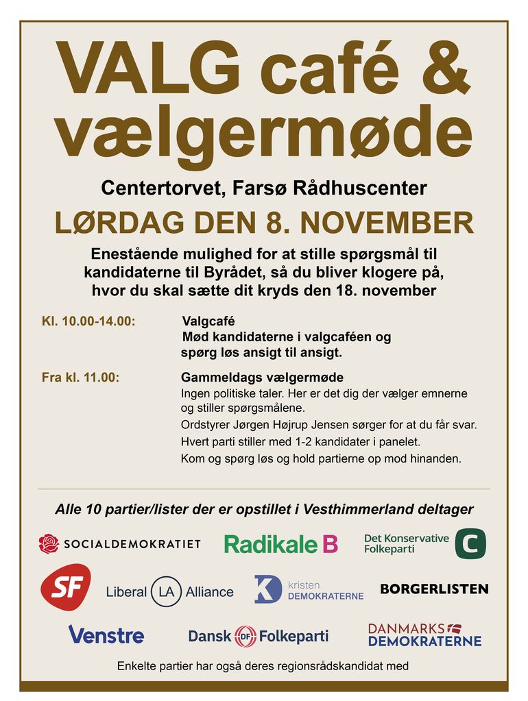 Lørdag, i Valgcafeen og til Vælgermødet i Farsø Rådhuscenter fra kl. 10.00 – 14.00, er der mulighed for at tage nogle af emnerne op igen – og nye.