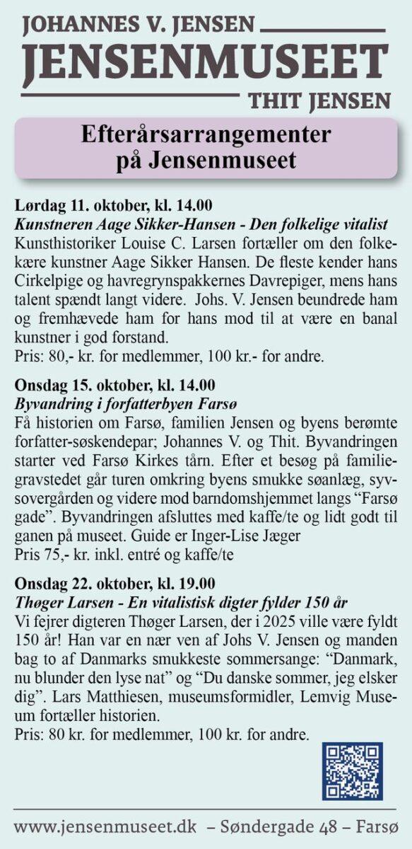 FARSØ: På Johannes V. Jensen og Thit Jensen Museet kan man i denne måned opleve to spændende arrangementer, der sætter fokus på markante skikkelser i dansk kunst- og litteraturhistorie.