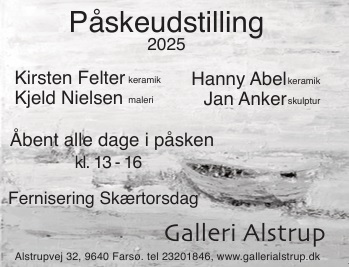Påsken nærmer sig og for 30. år i træk åbner Galleri Alstrup med en indholdsmættet udstilling, en lille tæt udstilling med malerier, keramik og skulpturer, med nye og gammelkendte kunstnere.