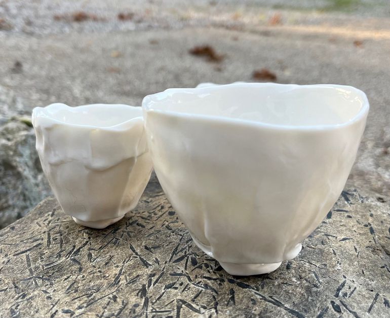 Kirsten Felter udstiller keramik, og der er gået meget ler gennem fingrene på hende, siden hun i 00’erne var på sine første keramikkurser hos Hanny Abel. I de sidste 8 år har hun haft eget værksted i Vesterbølle. Kirsten Felter laver fortrinsvis brugskeramik, kopper, bægre, små skåle i porcelæn og stentøj. Man kan se at hun er fascineret af materialer og overflader der taler til sanserne, og hun blander gerne forskellige slags ler for at få den grove, taktile overflade, der kendetegner mange af hendes ting. Inspirationen henter hun i høj grad fra naturen og fra den keramiske tradition, især fra Japan. Til påskeudstillingen håber hun at udstille en serie helt nybrændte, sort/hvide raku får.