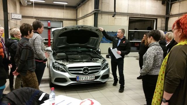 De elementære gode råd om biler kom naturligvis fra Autogårdens indehaver, mekaniker Peter Lindgaard, der havde trukket en bil indenfor for at vise hvordan man skifter væsker, tjekker lys, advarselslamper og sikrer sikre dæk på bilen. Gode råd som kvinderne lyttede meget opmærksomt til og stillede spørgsmål til.