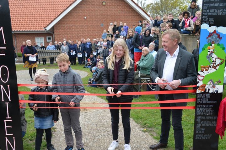 Som økonomisk bidragyder til områdefornyelsen var Vesthimmerlands Kommunes borgmester Per Bach Laursen mødt frem. Han skulle også senere klippe snoren til det nye aktivitetsområde sammen med tre elever.