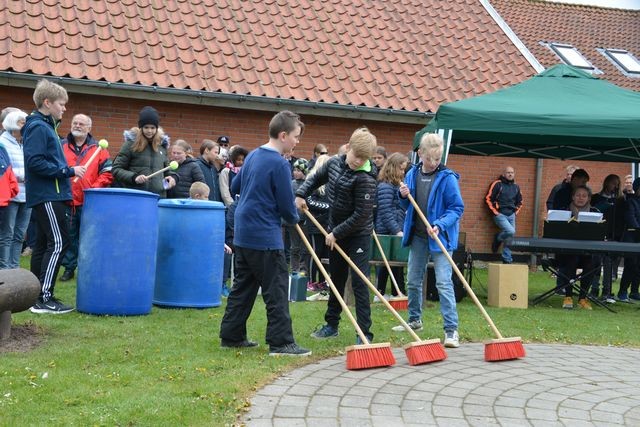 Med til indvielsen hørte også musikalske indslag fra Gedsted Skoles elever. Her er det Michael Jackson nummer der fremføres med instrumental hjælp fra koste.