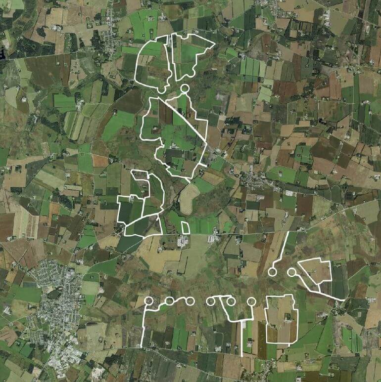 Område på 660 ha med 21 vindmøller og ca. 480 ha solceller