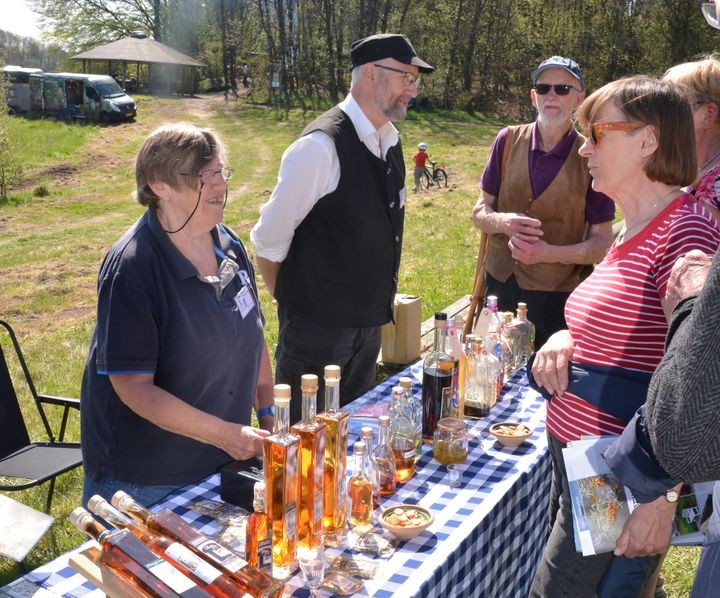 Også i søndags var der komponeret en særlig snaps til lejligheden, nemlig Skovens Dags 10 års jubilæum i Uhrehøje Plantage. Der blev uddelt smagsprøver til skovens besøgende, som straks efter bekendtgjorde: – Den er god – ualmindelig god. Snapsens smag stammer fra urter og bær plukket i Uhrehøje, som er udvalgt af Bodil Nymark og tovholder for Skovens Dag, Karin Winther i fællesskab.