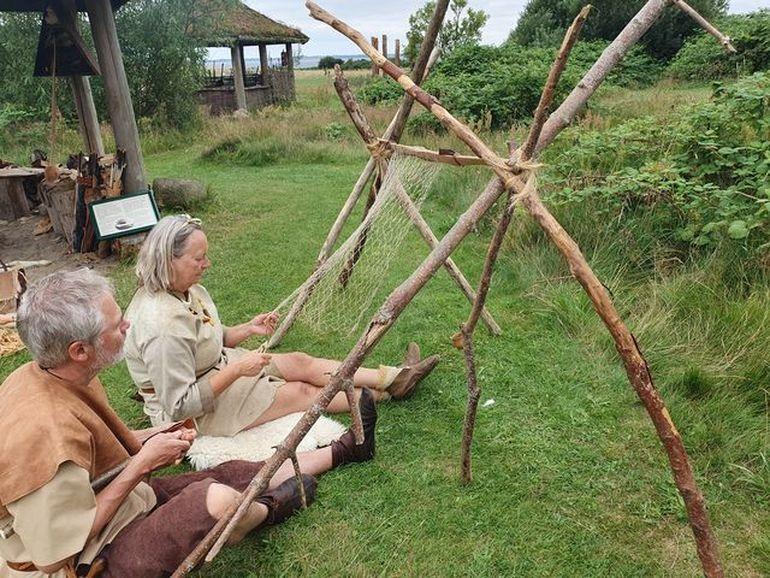 En dag kan man også prøve at væve med bast fra lindetræets bark og skabe et eget lille kunstværk af naturmaterialer, som du kan tage med hjem.