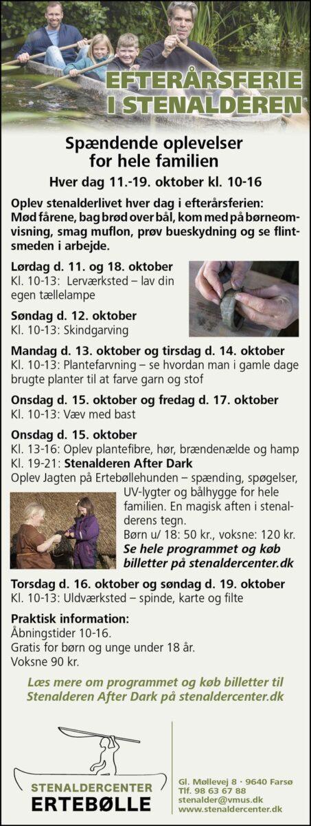 ERTEBØLLE I efterårsferien kan man besøge Stenaldercenter Ertebølle Der er ugen igennem sjove oplevelser for børn, smagsprøver til de nysgerrige og masser af historie at røre ved.