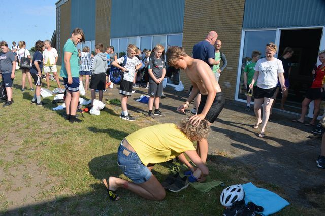 3-7. klassetrin deltog i et triathlon, som bestod af 300 m. svømning i Farsø Svømmehal, 18 km cykling og 4 km. løb i Farsø, Fandrup og Fragtrup området. På Farsø Stadion sørgede kammerater for at heppe på de sidste løbsmeter inden målstregen blev passeret.