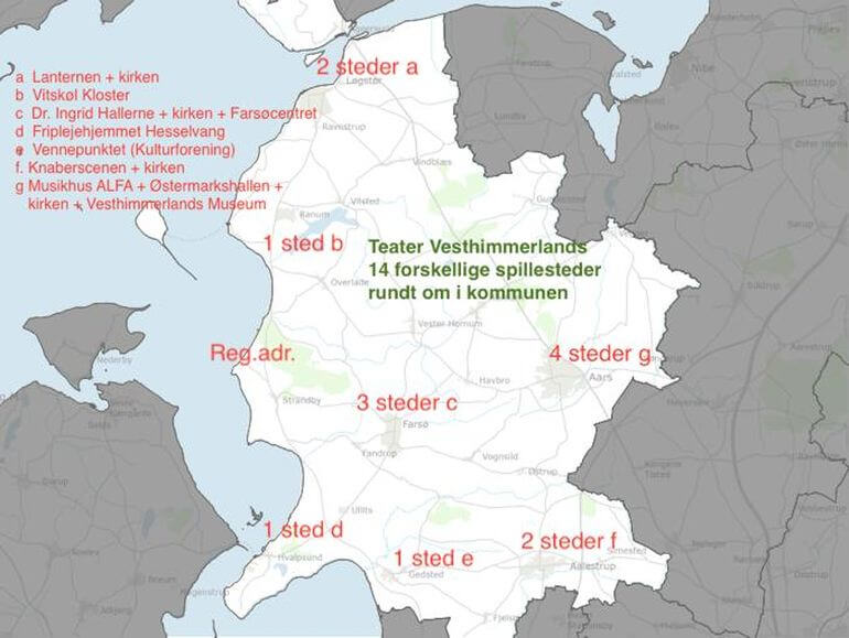 I vores egen teaterforening Teater Vesthimmerland viser vi fx i indeværende år i alt 11 forskellige forestillinger, nogle med flere opførelser, så i alt 16. Disse vises 14 forskellige steder rundt om i kommunen. Vi viser teater for skolebørn, konfirmander, ungdomsuddannelser, voksne, plejehjemsbeboere, også for tilfældige handlende/turister, når der er gadeteater.