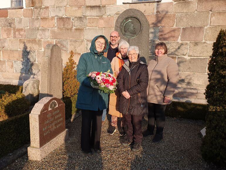 Ud over fejringen i lørdags i Farsø Rådhuscenter og på Johs. V. Jensen og Thit Jensen Museet, så fik hun på selve fødselsdagen besøg på gravstedet på Farsø kirkegård.