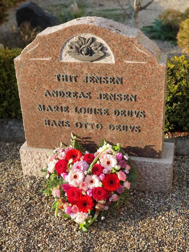 Det var bestyrelsesmedlemmer fra Støtteforeningen for Johs. V. Jensen og Thit Jensen Museet samt museumsleder Peter Hørup, der her til formiddag var forbi med en flot og farverig hjerteformet krans, der helt sikkert faldt i Thits smag.