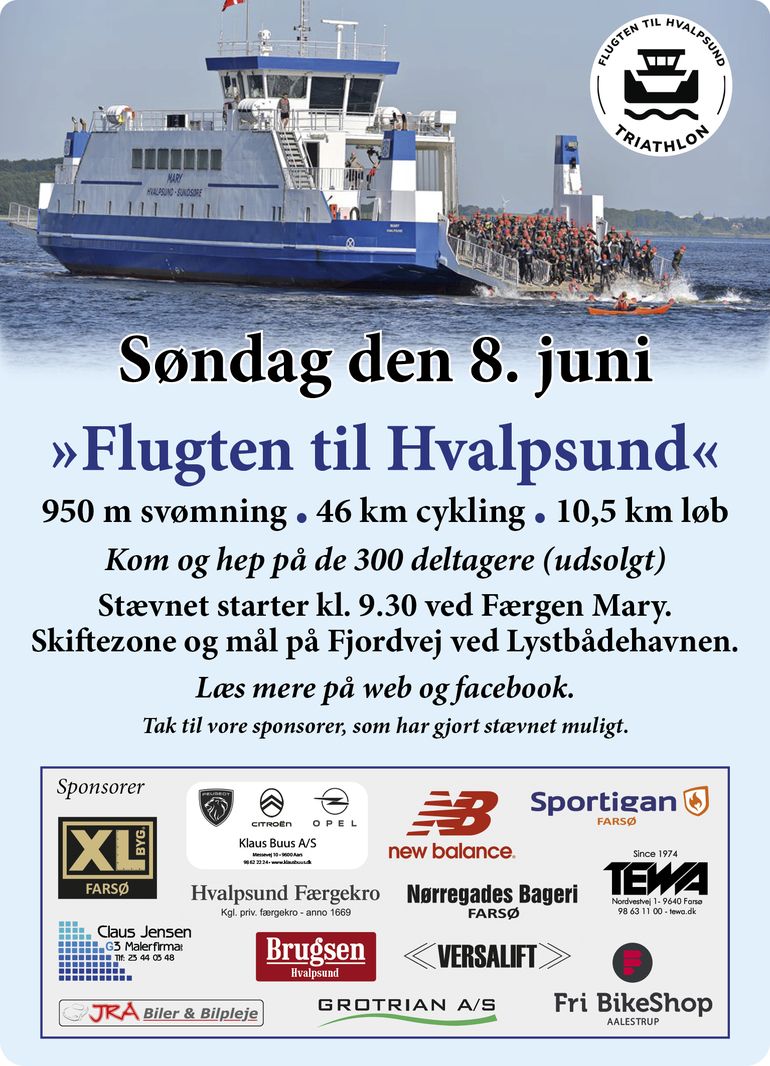 “Flugten til Hvalpsund Triathlon” er et kvart distance triathlonstævne og er det eneste af sin slags med start fra færge. Den præcise distance lyder på: 950 meter svømning, 46 km cykling og 10,5 km løb