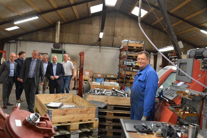 Administrerende direktør Jørgen Fransgaard viste delegationen rundt på Fransgård Maskinfabrik. De fik også en god snak med medarbejderne, hvor flere, bl.a. Bjarne Pedersen kunne afsløre, at han har arbejdet hos Fransgård i over 40 år og er stolt af det.