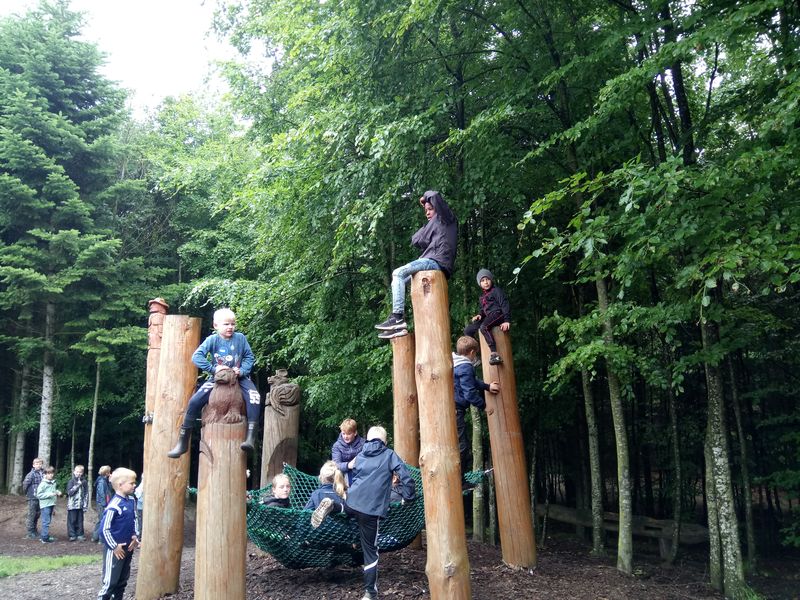 VESTRUP: I dag tog alle børn og voksne fra Vestrup Skole på udflugt til Rebild Bakker og naturlegepladsen Røverknolden.